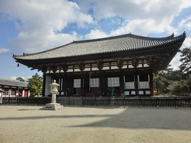 | 興福寺の東金堂(とうこんどう)は、726年(神亀3年)、聖武天皇が叔母にあたる元正天皇の病気平癒を祈願して、薬師三尊を安置する堂として創建された。 中金堂(ちゅうこんどう)の東にある金堂。 創建当初は、緑色のタイルが敷かれ、薬師如来の浄瑠璃の世界が表されていたという。 本尊は薬師如来。 その後、度重なる焼失と再建を繰り返し、現在の建物は、1415年(応永22年)に再建されたもので国宝に指定されている。 |